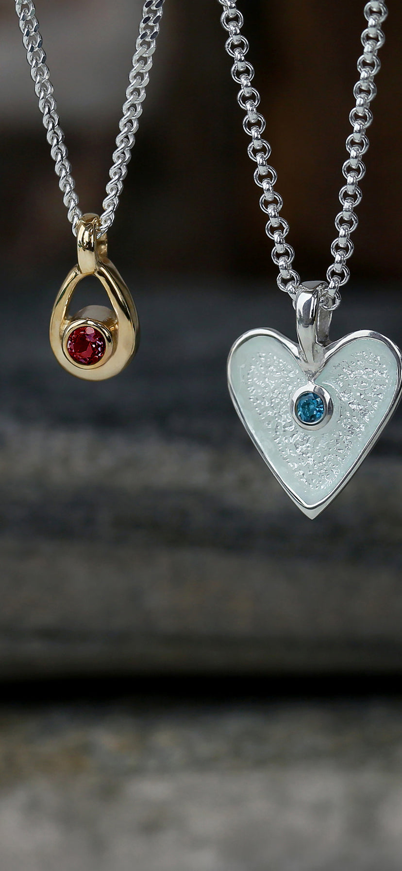 Celebrate every month with Sheila's birthstone jewellery. Discover beautifully crafted designs, including Droplet Pendants and Secret Hearts, all hand-finished in Orkney. Find the perfect piece to match your own birth month or as a gift to someone special.
