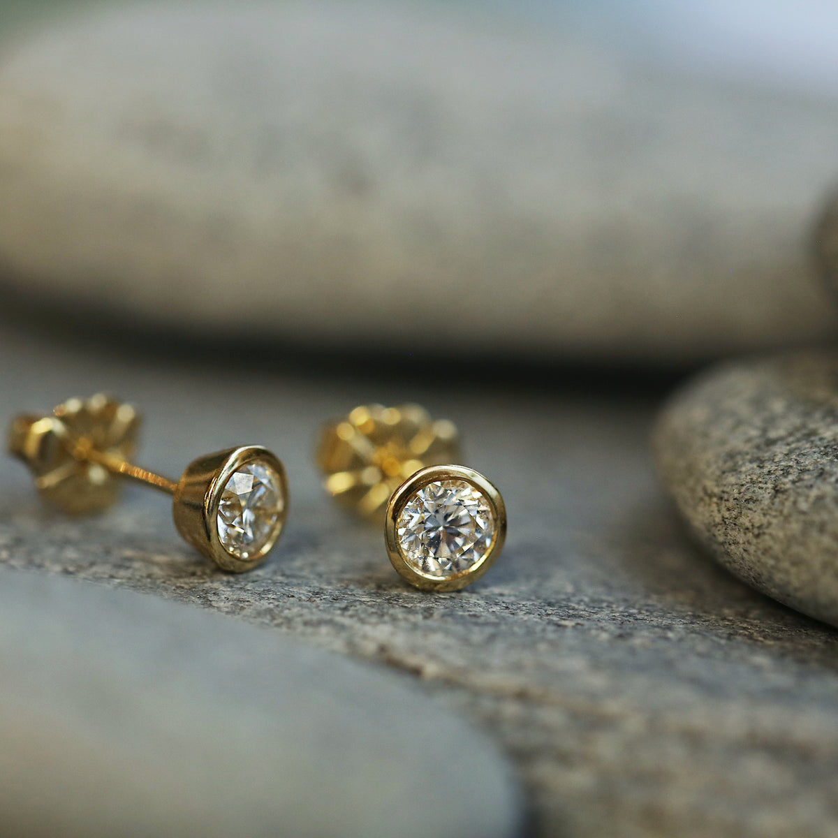 • These contemporary solitaire stud earrings in rare and exclusive 18ct yellow Scottish Gold* are beautifully hand-set with 4mm diamonds.