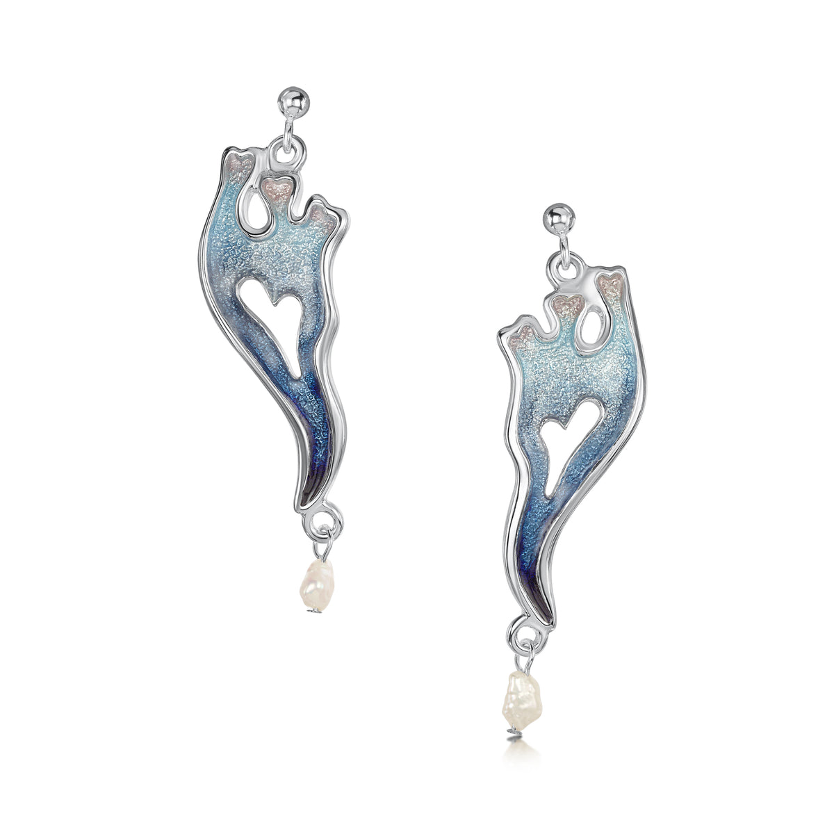 Sea Moss Baroque Pearl Dress Drop Earrings in Sea Blue Enamel