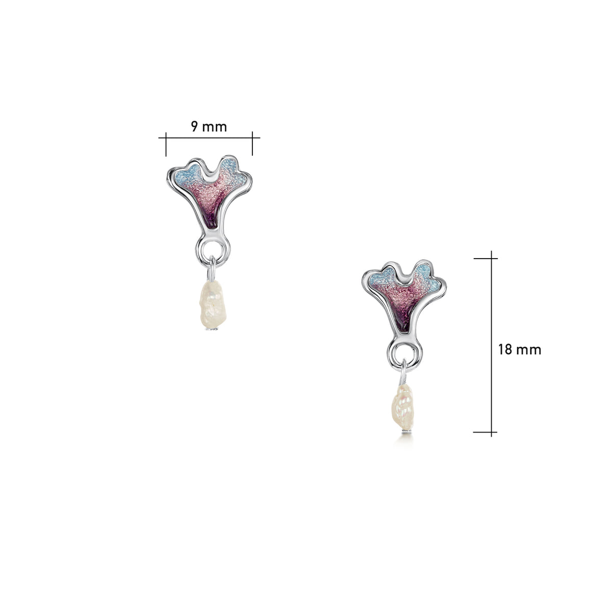 Sea Moss Baroque Pearl Small Stud Drop Earrings in Sea Pink Enamel