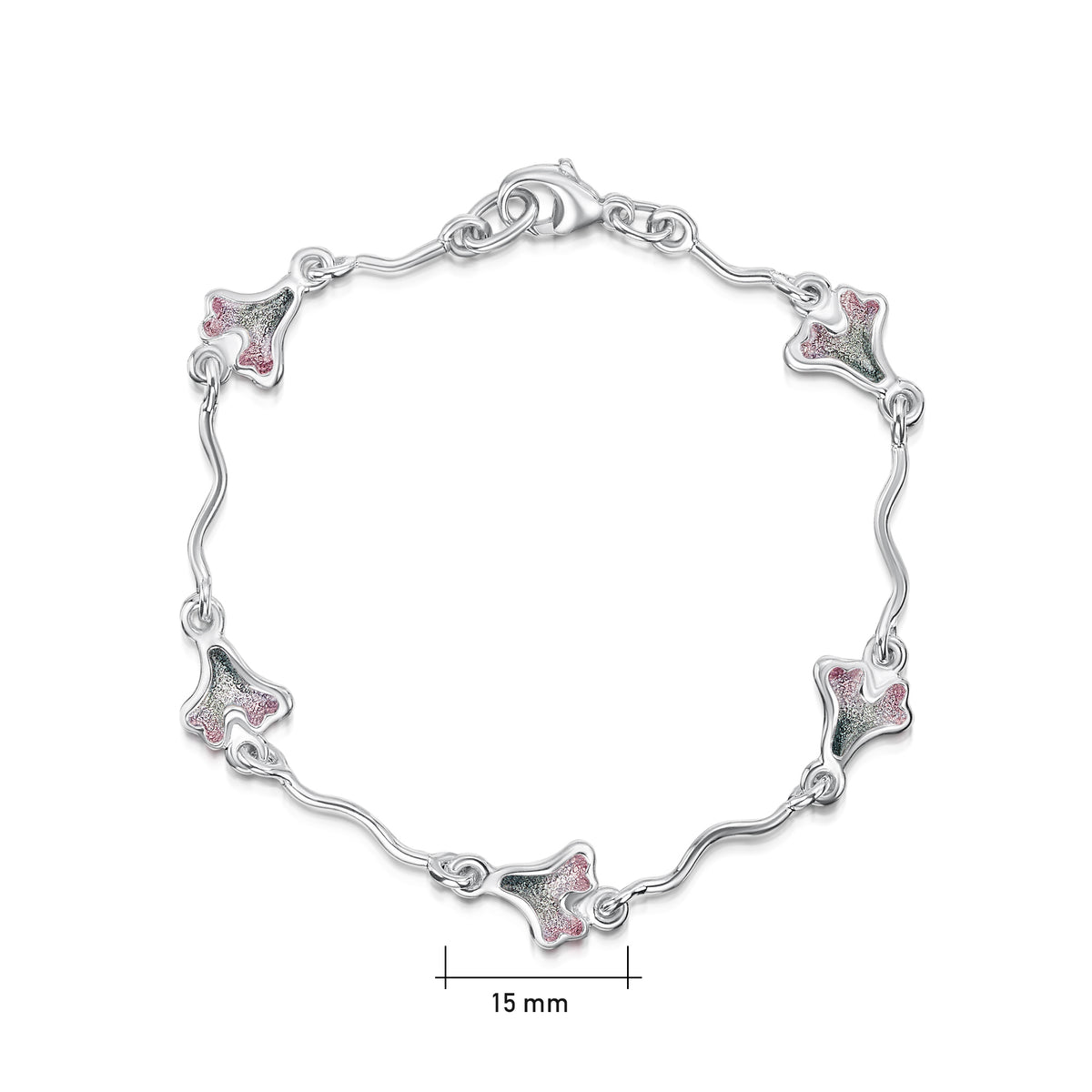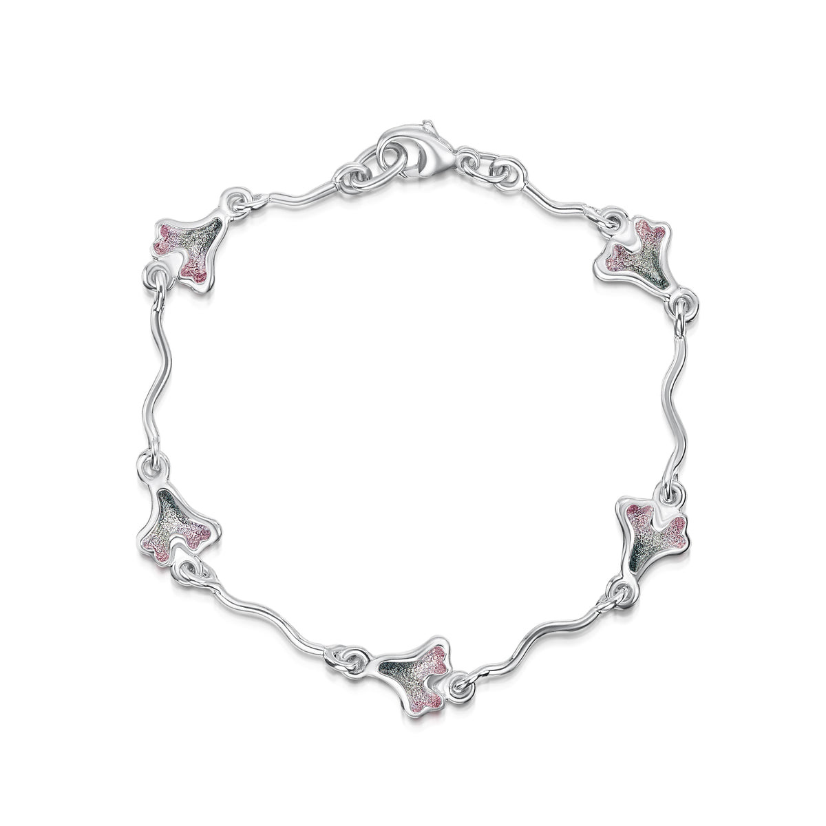 • This silver Sea Moss bracelet features five enamelled seaweed-inspired forms, separated by solid silver curved bars. The bracelet is beautifully hand-enamelled in Sheila's Mill Sands colourway. Each enamelled link measures approximately 9mm wide.