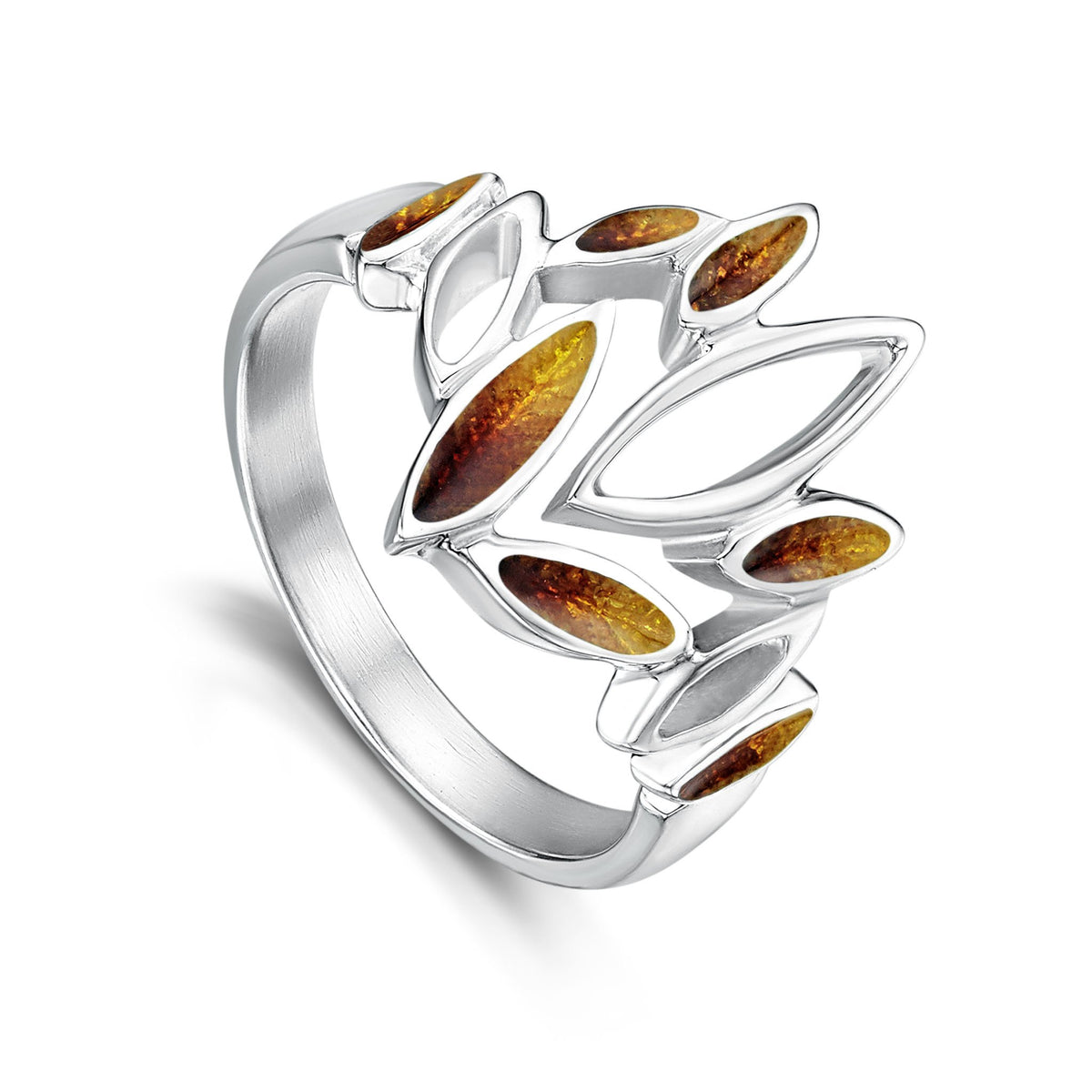 This sterling silver Seasons Ring features multiple silver leaf-shape outlines, some enhanced with 'Autumn' enamel, others left open.