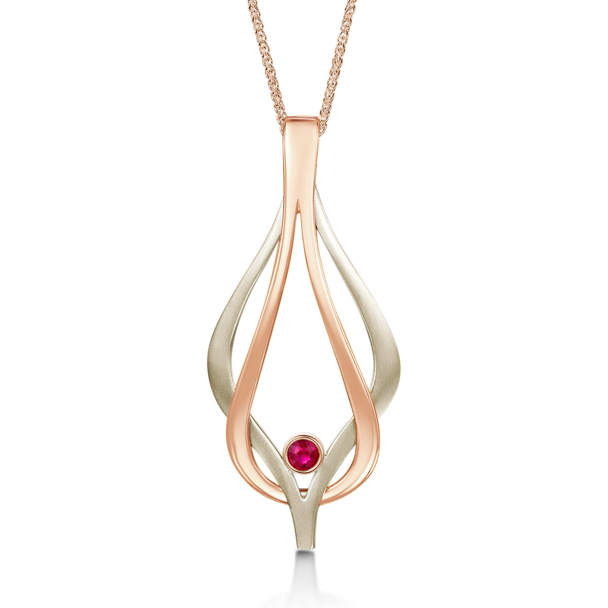 Reef Knot Ruby Dress Pendant in 18ct White & Rose Scottish Gold