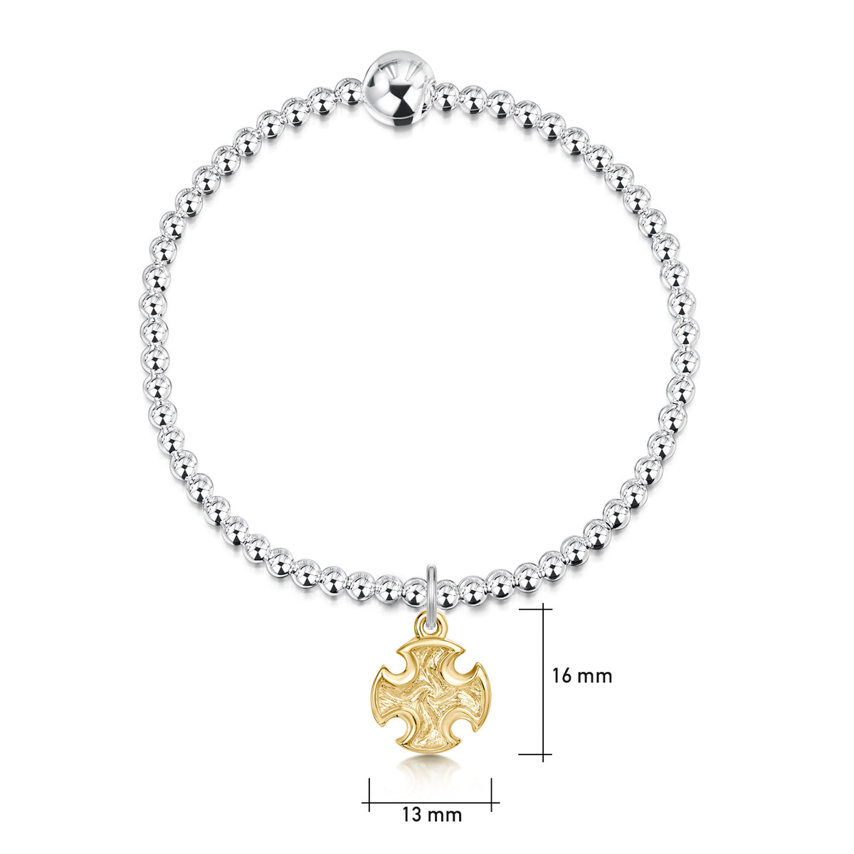 This Sinclair Cross stretch bracelet features a solid 9ct yellow gold charm, beautifuly hand-finished in our Orkney workshop. The golden cross design measures approximately 13mm wide and hangs from a sterling silver stretch bracelet.